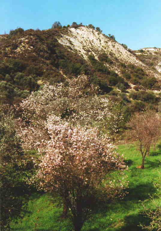 überall. Hier ein rosa blühender Mandelbaun - gibt's auch in Weiß. |